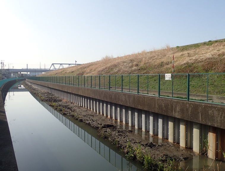 工事概要 本工事は、国土交通省 関東地方整備局 江戸川河川事務所発注の工事で、江戸川左岸田尻地区の矢板防食工事と山王防災ステーション、西水元水防拠点の備蓄材整備および三郷排水機場搬入路整備を行うものである。